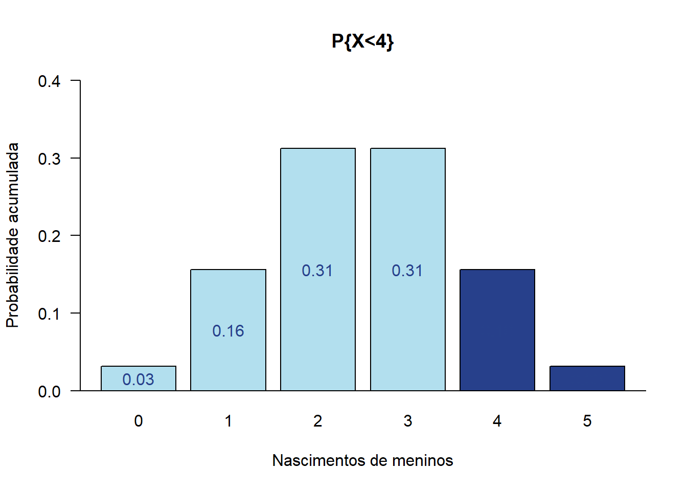 Por exemplo, quantos meninos nascerão em 5 partos com 81.25% de probabilidade cumulativa?