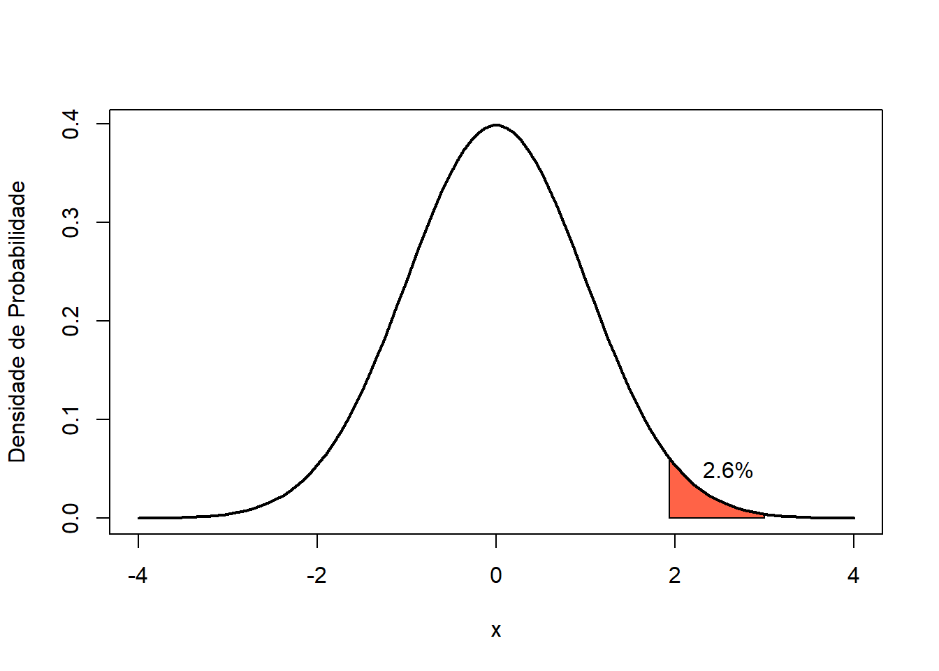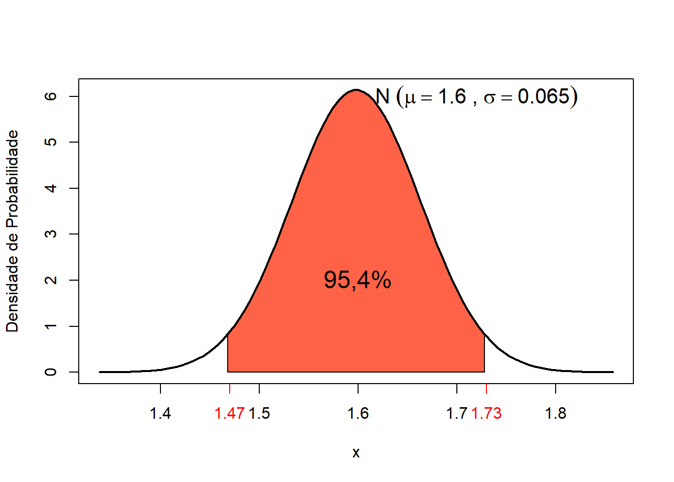 Para responder a essa pergunta, há necessidade de calcular a probabilidade de encontrar uma mulher com esta altura, nesta população. Primeiro, calcula-se a probabilidade de encontrar uma mulher com esta altura, nesta amostra. No R, existem as funções dnorm(), pnorm() e qnorm(), que permitem calcular a densidade de probabilidade, a distribuição cumulativa e a função quantílica da distribuição normal para um conjunto de valores. Além dessas, há a função rnorm() que permite obter observações aleatórias que seguem uma distribuição normal (5).