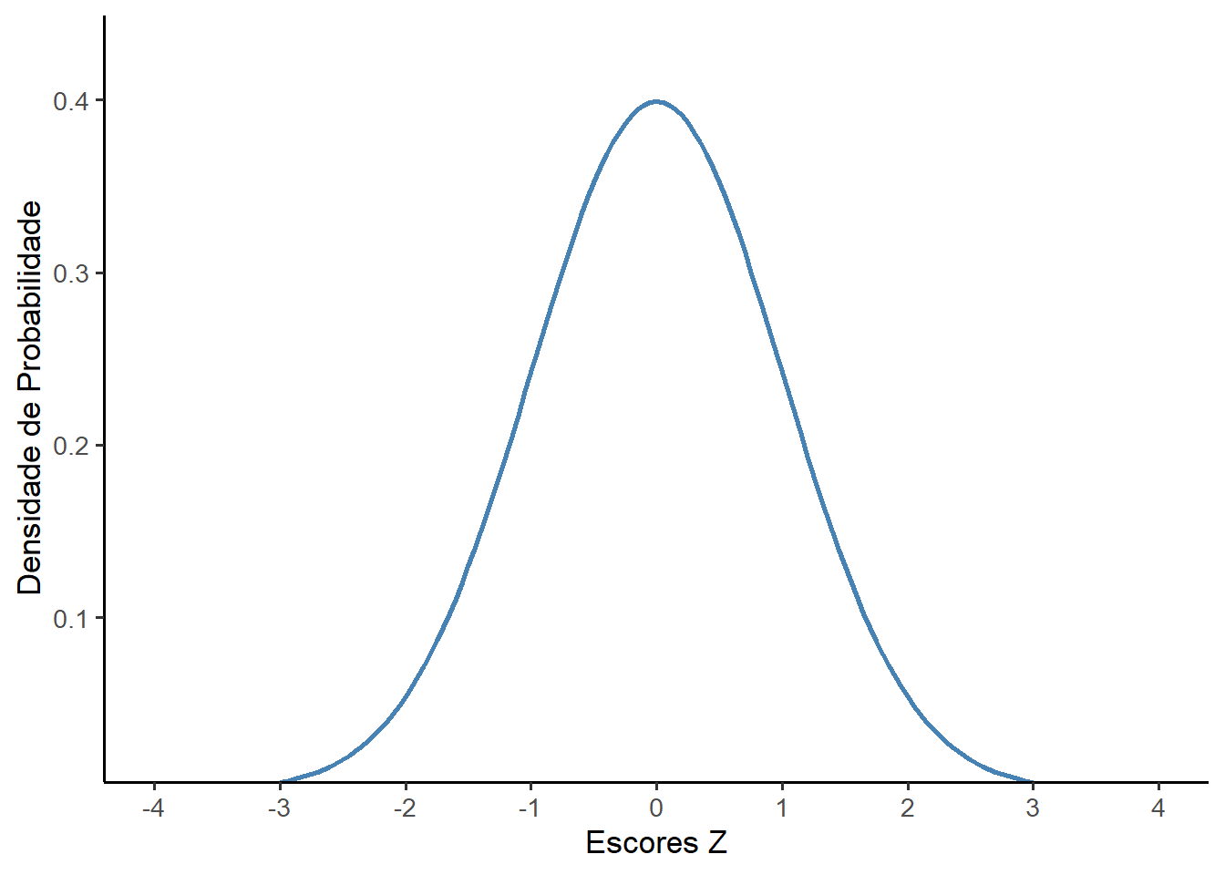 Para calcular probabilidades associadas a distribuição normal, costuma-se converter a variável aleatória original X, em unidades reduzidas ou padronizadas, denominadas de escore Z ou escore padrão. Essa transformação é realizada pela equação que indica o número de desvios padrão envolvidos no afastamento do valor x em relação à média da população: