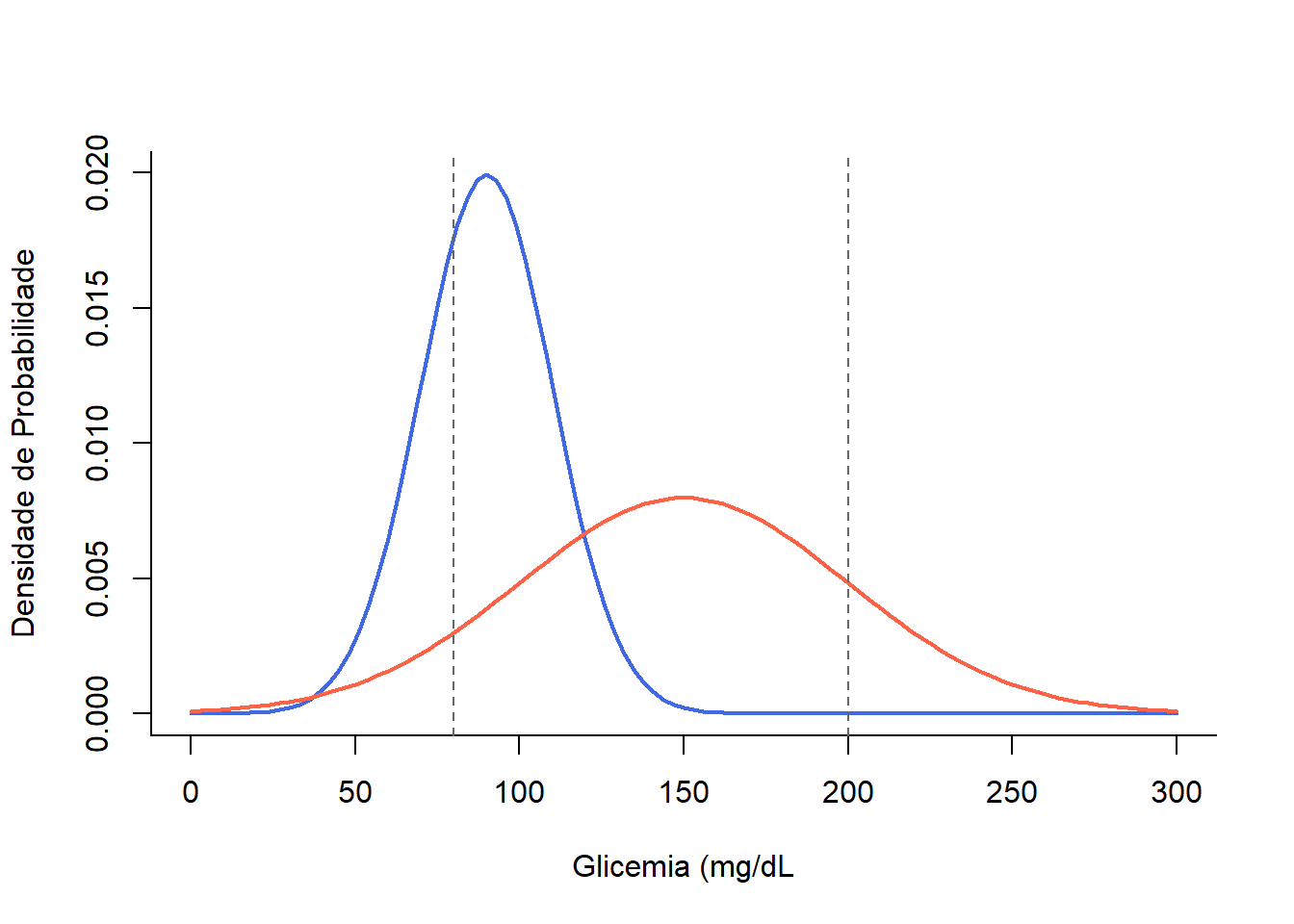 Idealmente, um teste de diagnóstico deveria ter altos níveis de sensibilidade e especificidade. No entanto, isso não é possível, pois existe um balanço entre sensibilidade e especificidade. À medida que a especificidade aumenta, a sensibilidade diminui e vice-versa. As curvas ROC podem ser usadas para identificar um ponto de corte em uma medição contínua que maximize a sensibilidade e a especificidade (veja Seção 21.6).